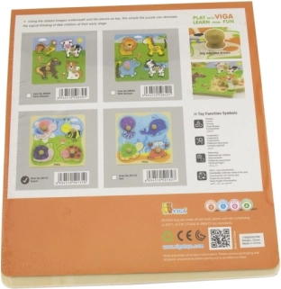VIGA Holz-Einlegepuzzle Wiesen-Tiere mit Griffknöpfen