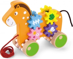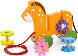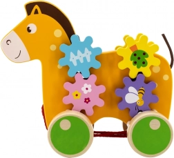 Holz-Pferd zum Ziehen mit Zahnrädern