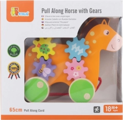 Die Seillänge beträgt 65 cm, was das einfache Ziehen auch für die kleinsten Kinder ermöglicht. Auffällig bunte Zahnräder schmücken nicht nur die Seite des Pferdes, sondern unterstützen auch die Entwicklung motorischer Fähigkeiten, indem sie sich bei Bewegung drehen.