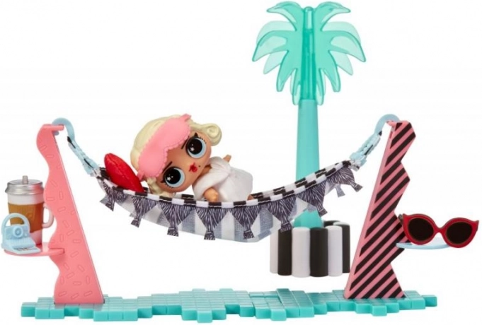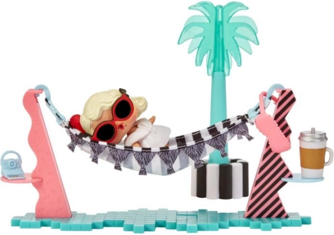 Genieße das Urlaubsfeeling mit der beliebten L.O.L. Surprise-Puppe in der 6. Möbelserie mit Zubehör. Öffne mehr als 10 Überraschungen, verwandle die Verpackung in eine separate Spielszene und kreiere eine tropische Ecke mit Hängematte, Palme und stylischen Accessoires. Kompatibel mit dem OMG Haus 2, ideal für kreatives und fantasievolles Spielen.