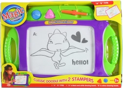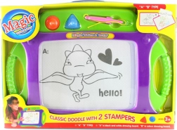 Diese farbenfrohe Zeichentafel ist ein großartiges Werkzeug zur Förderung der künstlerischen Fähigkeiten Ihrer Kinder. Mit den Maßen von etwa 44 x 32 cm bietet sie viel Platz für unbegrenztes Gestalten. Die Tafel ist mit einem an einer Schnur befestigten Stylus ausgestattet, sodass der Stift nie verloren geht. Außerdem enthält sie zwei zusätzliche magnetische Stempel zum Erstellen interessanter Formen.