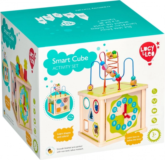 Dieser hochwertige 5-in-1 Holz-Motorikwürfel LUCY & LEO ist das ideale Lernspielzeug für kleine Entdecker. Er bietet mehrere Aktivitäten in einem: ein Perlenlabyrinth auf der Oberseite, eine Uhr mit beweglichen Zeigern, zwei Formensortierer und ein farbiges Rechenbrett. Dank der durchdachten Ausführung fördert er Hand-Auge-Koordination, Konzentration und räumliche Vorstellungskraft.