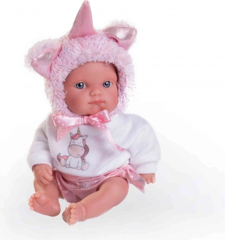 Realistische Puppe ANTONIO JUAN Einhorn Rosa, 21 cm. Ganzkörper-Vinyl, badegeeignet, ökologische Kleidung. Ideales Geschenk für Kinder ab 3 Jahren.