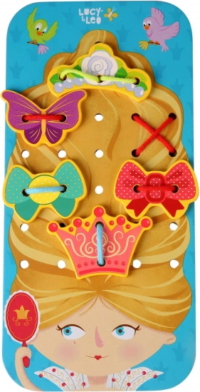 Entdecken Sie das kreative Holz-Fädelset Prinzessin von Lucy & Leo – ein spielerisches Spielzeug zur Förderung der Feinmotorik, Kreativität und des logischen Denkens. Kinder verzieren die Haare der Prinzessin mit farbigen Accessoires durch Schnüren und trainieren dabei Hand-Auge-Koordination, Farbwahrnehmung und Formunterscheidung. Eine ausgezeichnete Wahl als Montessori-Hilfsmittel für Vorschulkinder.