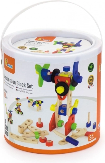 Dieser vielseitige Holz-Baukasten bietet Kindern endlose Baumöglichkeiten – von kleinen Fahrzeugen und Tieren bis hin zu einem Hubschrauber oder Roboter. Mit stabilen Holzteilen, Schrauben und Verbindern trainieren Kinder die Hand-Auge-Koordination und erlernen die Grundlagen des konstruktiven Denkens.