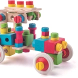Angenehme Holzteile in Kombination mit farbigen Kunststoffverbindern fördern die Feinmotorik, die Hand-Auge-Koordination und unterstützen kreatives Denken.