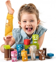 Woody bunte Würfel sind das ideale Werkzeug für Kinder, die gerne spielen und gleichzeitig neue Fähigkeiten erlernen. Die 26 Teile sind perfekt darauf abgestimmt, den Kindern stundenlange Unterhaltung zu bieten. Jeder Würfel ist mit einer Vielzahl von Waldtiermotiven versehen und in leuchtenden, freundlichen Farben bemalt, die jedem Kind Freude bereiten.