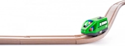 Grüner Zug mit Schienen und Lokführer auf Batterien