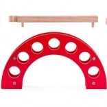Der rote Bogen und das natürliche Holz schaffen einen schönen ästhetischen Kontrast und fördern kreatives Spielen.