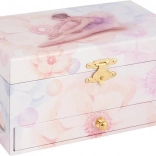 Entdecken Sie den Zauber der musikalischen Atmosphäre mit dem GOKI Spieluhr-Schmuckkästchen im Motiv „Wunsch“. Nach dem Öffnen des Deckels erklingt die Melodie von Schwanensee und die kleine Ballerina beginnt vor dem Spiegelchen zu tanzen. Das Schmuckkästchen bietet Platz für Ringe, Armbänder und andere Kleinigkeiten und wird zu einem zarten Accessoire für die Kommode oder das Kinderzimmer.