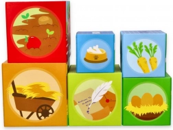 Dieses farbenfrohe Set aus Stapelwürfeln mit Bauernhofmotiven bietet Kindern unendlich viele Spielmöglichkeiten: vom Bauen eines hohen Turms über Stecken und Sortieren bis hin zum Entdecken von Zahlen, Früchten und niedlichen Tieren. Jeder Würfel ist so gestaltet, dass er visuelle Wahrnehmung, Form- und Mengen­erkennung sowie erstes Zählen fördert.