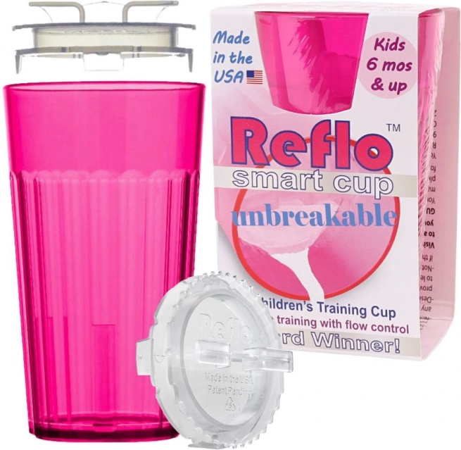 Der rosa Reflo-Trainingsbecher hilft Kindern ab 6 Monaten, sicher aus einem offenen Becher zu trinken. Dank der Durchflussregulierung wird Verschütten reduziert, das unzerbrechliche Design ist ideal für zu Hause und unterwegs, und das kompakte Volumen von 170 ml passt perfekt in kleine Kinderhände. Hergestellt in den USA, entspricht EN 14350.