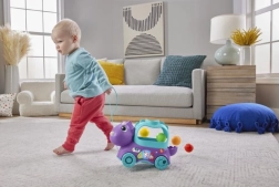 Gehen Sie auf fröhliche Entdeckungstour mit dem interaktiven Dino-Spielzeug von Fisher-Price, das Kinder mit seiner farbenfrohen und lehrreichen Art begeistert. Einfach anstoßen oder hinter sich herziehen und beobachten, wie die bunten Bälle darin hüpfen.