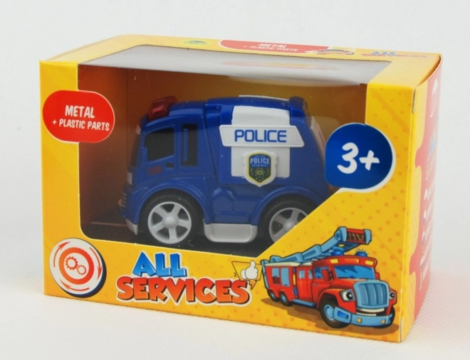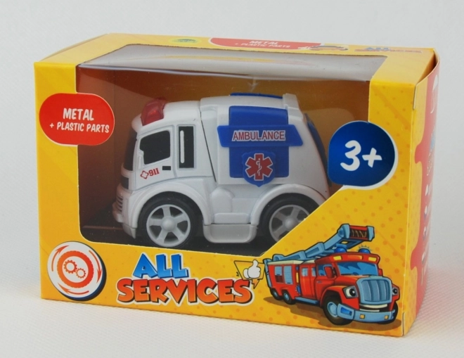 Im Sortiment: Feuerwehrauto, Polizeiauto, Krankenwagen, Bagger.