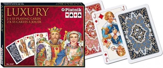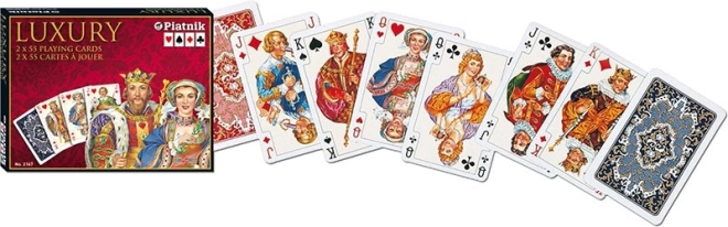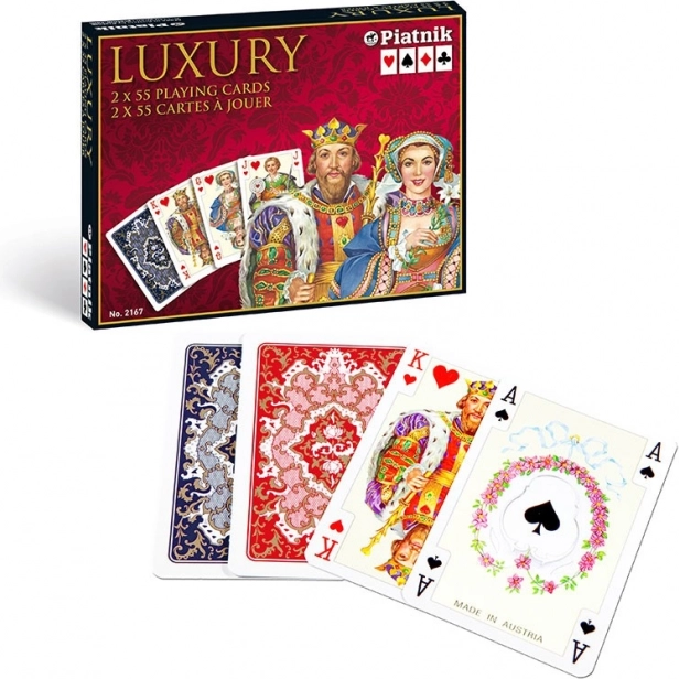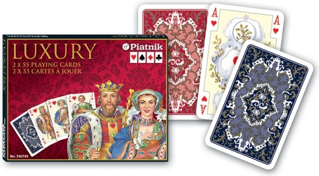 Luxuskarten von Piatnik stellen den Gipfel der Eleganz dar, dank sorgfältiger Verarbeitung und der Verwendung hochwertiger Materialien. Die Vorderseiten der Karten sind mit einzigartigen Piatnik-Figuren verziert, während die Rückseiten so gestaltet sind, dass sie optisch ansprechend und leicht zu erkennen sind.
