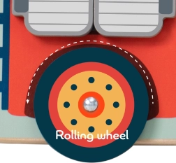 Aufklappbare Türchen; Perlenlabyrinth; Drehrad; Leiter; Klingel; Drehknopf