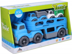 Suchen Sie eine einfache und effiziente Möglichkeit, kleine Autos zu transportieren? Dieser robuste Transporter macht es möglich! Er misst 30 cm und bietet genügend Platz für bis zu drei kleine Autos, die im Set enthalten sind. Der Transporter ist in den Varianten blau und grün erhältlich, sodass für jeden etwas dabei ist.