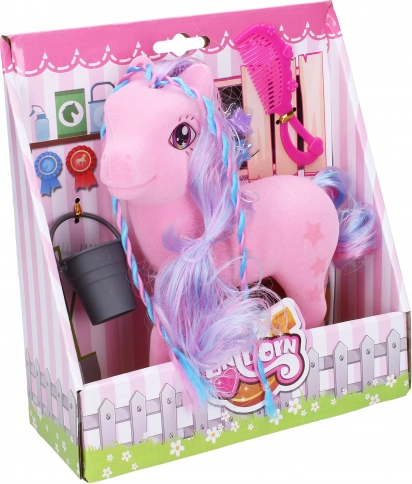 Dieser zauberhafte Pony begeistert jedes Kind, das gerne Haare pflegt. Mit seiner langen Mähne kannst du die unterschiedlichsten Frisuren kreieren. Das Set enthält alles, was du für die Pflege des Ponys brauchst: