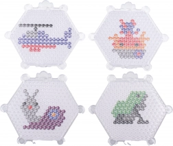 Hexagonale Platten mit Noppen halten die Perlen an Ort und Stelle und helfen, detailreiche Motive wie Auto, Hündchen, Entchen oder Schmetterling zu gestalten.
