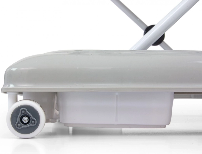 Die Sicherheit wird durch vier hochwertige Rollen, die den Boden nicht zerkratzen, und acht Gummistopper gewährleistet, die das Kind vor dem Herunterfahren von Treppen oder anderen Hindernissen schützen.