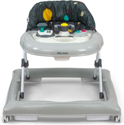 Die Lauflernhilfe Patrol Cosmos von Milly Mally unterstützt dank verstellbarem Sitz, interaktivem Panel und Sicherheitsfeatures die natürliche Bewegung und Entwicklung von Kindern.