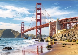 Ein fesselnder Blick auf die berühmte Brücke in San Francisco: Der Kontrast der roten Konstruktion zum blauen Himmel belebt jede Puzzlesammlung.