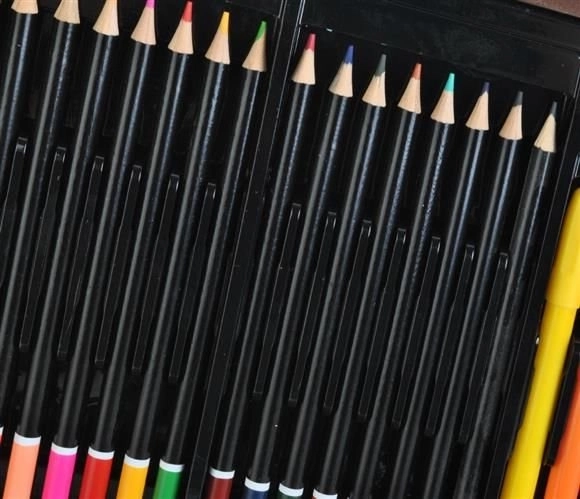 Dieses vielseitige Kreativ-Set bietet alles, was Sie zur Entfaltung Ihrer Kreativität brauchen – vom Skizzieren bis zur Aquarellmalerei. Alles ist in einem robusten Holzkoffer mit sicheren Metallverschlüssen und einem bequemen Ledergriff für einfaches Tragen untergebracht. Dank separater Fächer haben Sie jedes Werkzeug sofort griffbereit und perfekt organisiert.