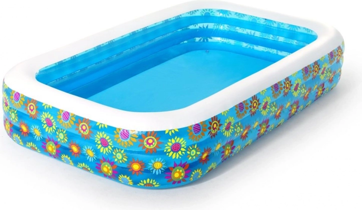Der Familienpool von BESTWAY mit attraktivem Blumenprint verwandelt Ihren Garten in eine sommerliche Oase. Er lässt sich leicht aufpumpen, schnell befüllen und ist im Handumdrehen bereit für Spiel und Entspannung. Die robuste Konstruktion aus starkem PVC (0,32 mm) hält sommerlichen Aktivitäten stand und bleibt zugleich angenehm komfortabel.