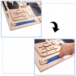 Das Brett kann auf einen Tisch gestellt, auf den Boden gelegt oder an der Wand aufgehängt werden dank eingebauter Aufhänger. Das Spielen auf diesem Brett verbessert auch die Konzentration und Vorstellungskraft.