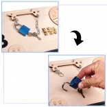 Dank verschiedenster Elemente wie Schalter, Reißverschlüsse und andere bietet die Holzmanipulationstafel Kindern eine sichere Umgebung zum Entdecken und Lernen. Kleine Kinder können Alltagsgegenstände wie Steckdosen und Schalter sicher handhaben, während sie ihre manuellen Fähigkeiten entwickeln.