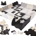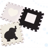 Die Kontrast Puzzle Schaumstoffmatte für Kinder bietet grenzenlose Spielmöglichkeiten und wächst mit deinem Kind mit. Mit herausnehmbaren Elementen in kontrastreichen Farben wird die Matte zu einem spannenden Lernspielzeug für Kleinkinder.