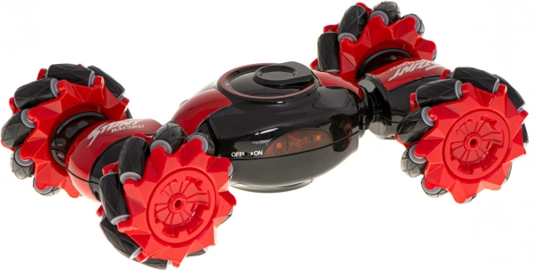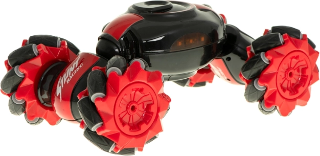 Unterhaltsames und robustes RC-Auto mit dualer Steuerung für actionreiches Fahren und Tricks. Dank mehrdirektionaler Räder, 360°-Drehungen und zwei Fahrmodi (Race/Off-Road) meistert es schnelle Sprints und anspruchsvolles Gelände. Im Lieferumfang sind zwei Controller enthalten: ein klassischer Joystick und eine Gestensteuerung mit Gravity Sensor mit 2,4 GHz.
