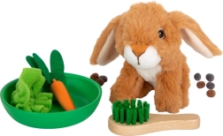 Im Set enthalten sind ein Plüschkaninchen und praktische Accessoires: Handfeger, Napf, Holzmöhre, ein Stück Salat sowie Filz-„Köttel“ für besonders authentische Pflegeszenen. Das Set ist eine ideale Alternative für Kinder, die noch kein echtes Haustier haben, und hilft, soziale und emotionale Fähigkeiten zu entwickeln.