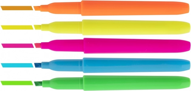Im Set enthalten sind fünf leuchtende Farben (Orange, Gelb, Pink, Blau, Grün) mit breiter Spitze für gleichmäßiges und sattes Ausmalen.