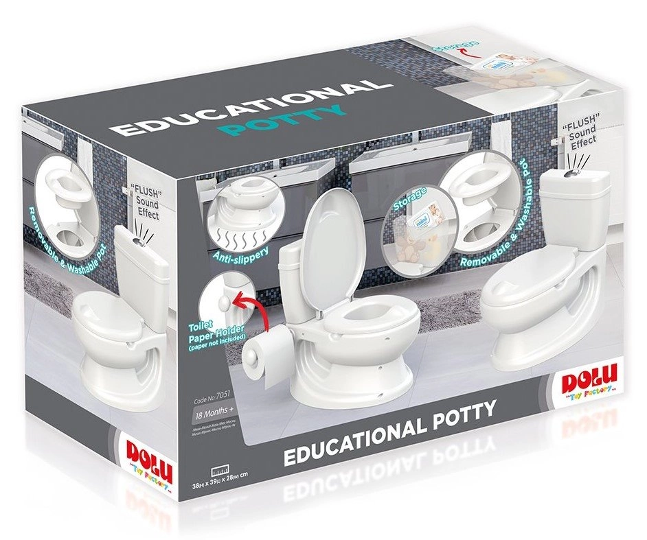 Dieses DOLU Kindertöpfchen ahmt eine echte Toilette detailgetreu nach, damit sich Ihr Kind beim Toilettentraining sicher und wohl fühlt. Die praktische Konstruktion ist leicht zu pflegen und bietet Stabilität sowie Komfort im täglichen Gebrauch.