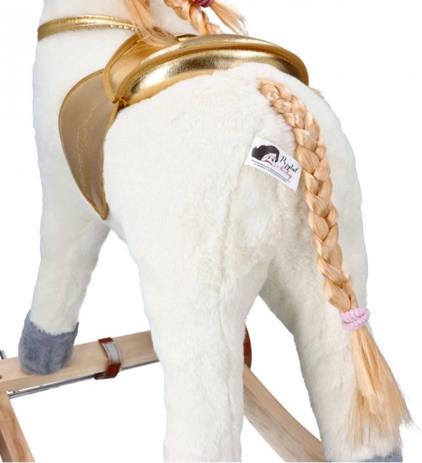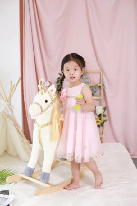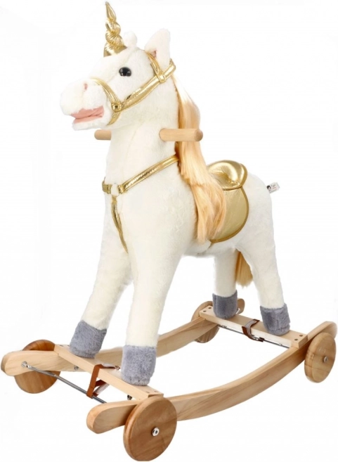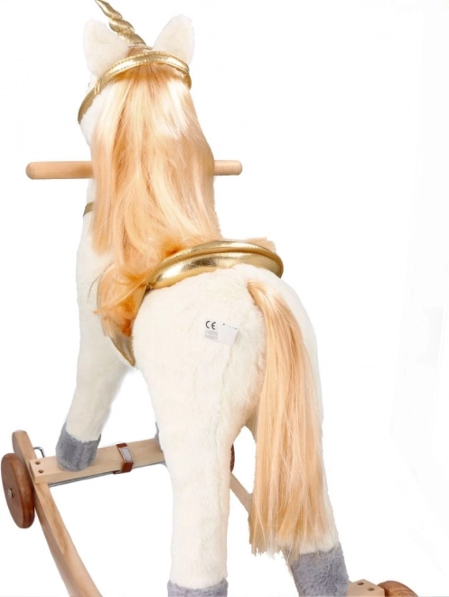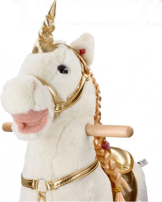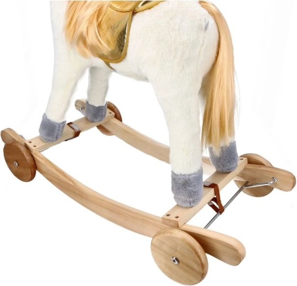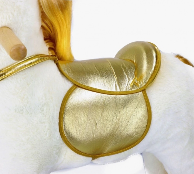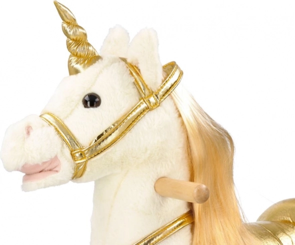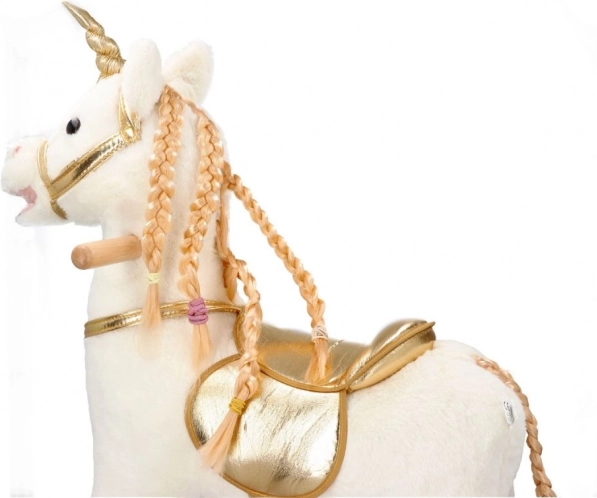 Erleben Sie die Aufregung der Fahrt auf diesem wunderschönen goldenen Einhorn. Mit weichem und angenehmem Plüsch bietet es Ihren Kindern ein komfortables und unterhaltsames Erlebnis. Stabile Holzkonstruktion und elegante vergoldete Elemente schaffen eine zauberhafte Atmosphäre für jedes Spiel.