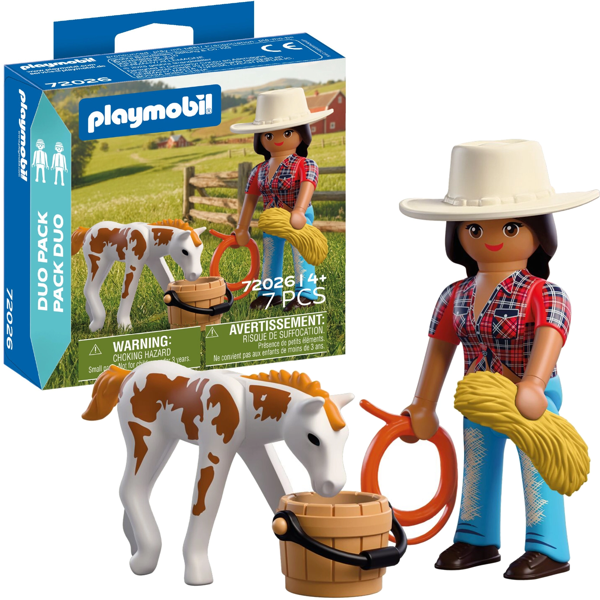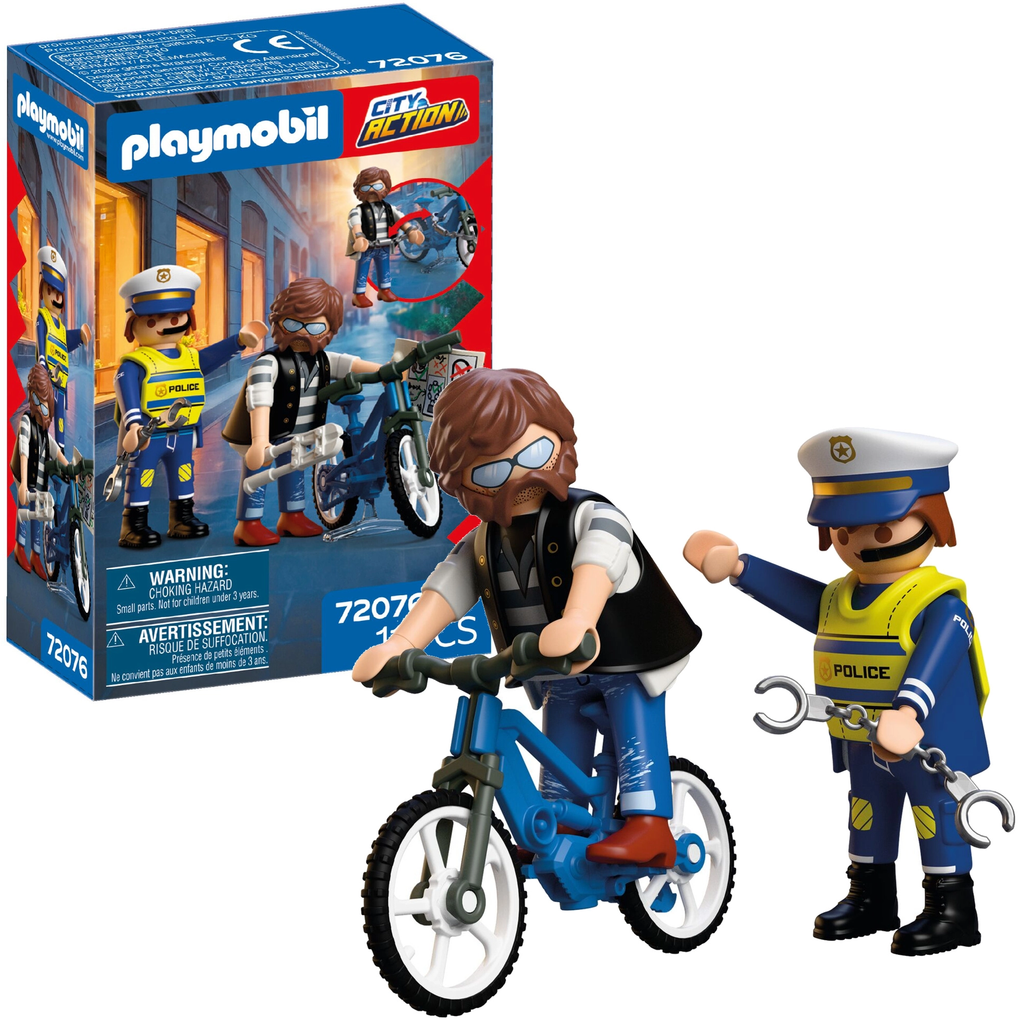 Choose your favorite ranges like Playmobil City Action (police, firefighters, and rescue), City Life (school, hospital, homes), Country (farm and animals), Family Fun (amusement park), Princess, Wild Life (safari), or Novelmore (knights and fortresses). For the youngest children, Playmobil 1.2.3 is ideal with larger pieces and no complex assembly. Every set includes Playmobil figures, vehicles, buildings, and accessories that can be easily mixed and expanded.