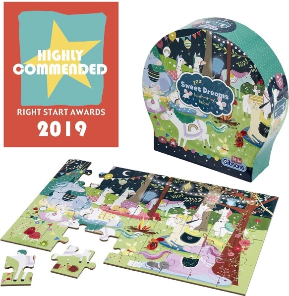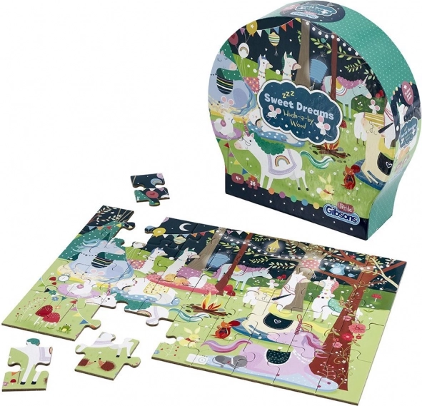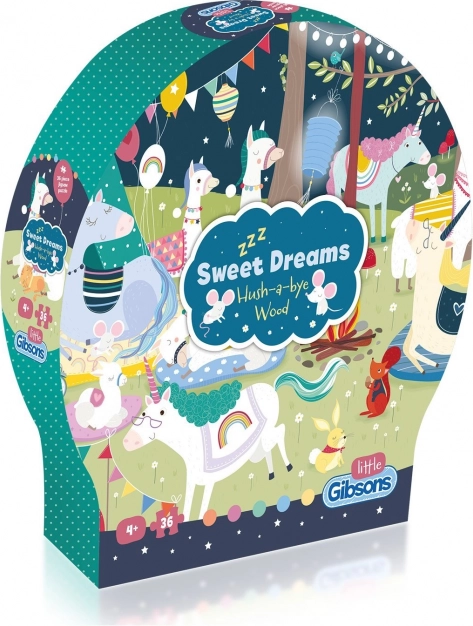 Sweet Dreams Puzzle with 36 Pieces offers a magical journey into a dream world full of llamas and unicorns. Ideal for stimulating memory and developing children's imagination.