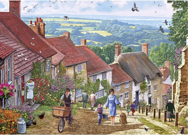 Enjoy relaxing moments with a quality GIBSONS puzzle. The picturesque street of Gold Hill in Dorset offers the atmosphere of old England and is ideal for anyone who loves detailed illustrations and peaceful puzzling.