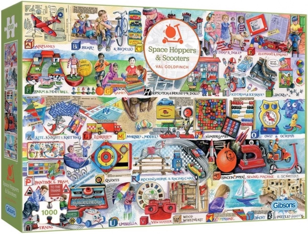 Discover the charm of classic jigsaws with this 1000-piece GIBSONS puzzle. The illustrated alphabet of games and toys will delight lovers of nostalgia and family puzzling alike. High-quality pieces with precise cuts and a matte finish ensure a great experience and a finished image measuring approximately 68 × 49 cm.