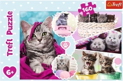 Adorable cat puzzle for kids aged 6+ offers fun puzzling and learning in one. The set includes 160 pieces made from high-quality cardboard with vivid colors. The pieces are comfortably sized for little hands and the whole set is ideal as a gift.