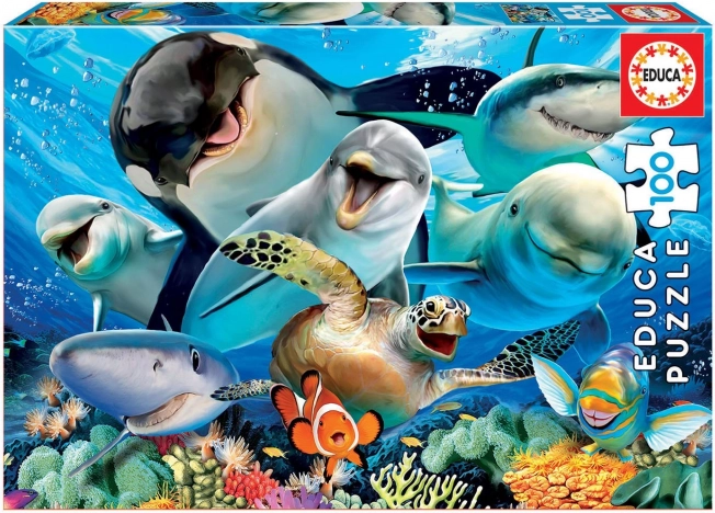 Discover the magic of fun with Educa puzzle, which includes a hundred pieces and a beautiful underwater selfie theme, sure to delight any sea world enthusiast.