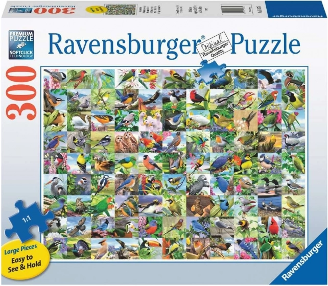 Discover the joy of puzzling with RAVENSBURGER in a large format: the 99 Enchanting Birds motif and 300 pieces offer the perfect mix of fun and relaxation. Thanks to the anti-reflective finish, precisely cut pieces, and SoftClick technology, the pieces fit together perfectly for a smooth, pleasant experience.