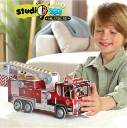 Discover a fun construction kit that lets kids build a detailed 3D model of a fire truck. The set is designed for easy, clean assembly—no scissors or glue. Simply pop the individual parts out of the cardboard and connect them using plastic screws and nuts.