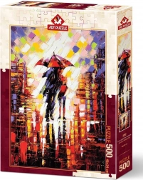 Enjoy relaxing with the romantic motif “Love Under the Umbrella” by ART PUZZLE. This high-quality 500-piece puzzle delights with precise die-cut pieces, rich colors, and a finished image measuring approximately 34 × 48 cm. The manufacturer also offers a missing piece replacement service upon providing the production batch number.