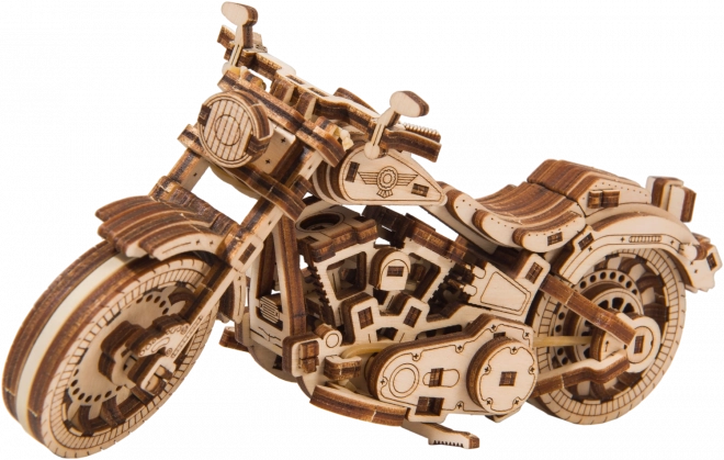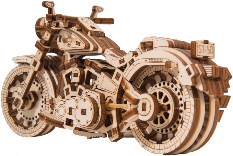 The wooden mechanical kit of the most amazing Cruiser V‑Twin motorcycle is waiting for you! Thanks to the unique design and surprising details of this model, your time spent will be full of fun and great emotions. You can steer using the front wheel. The motorcycle, with its flywheel mechanism, can travel up to 1 meter. You’ll be thrilled by the moving cylinders when the rear wheel turns, as well as the shock absorbers on the motorcycle’s front fork. The Cruiser V‑Twin is equipped with brake discs and rubberized wheels. The model includes details of a real motorcycle: - functional kickstand, - turn signal, - license plate, - reflectors, - rear‑view mirrors. The WOODEN CITY Cruiser V‑Twin 3D puzzle will be the best gift for any motorcycle enthusiast. Difficulty: 3 out of 5 (according to Wooden City) Estimated assembly time: 2 hours Scale: 1:13 Wooden 3D puzzles by WOODEN CITY are intricately crafted functional mechanical models that are assembled without glue or tools. They are made from eco‑friendly wooden materials—quality birch plywood. With WOODEN CITY mechanical wooden puzzles you will enjoy hours of assembly fun and get up close with gears, rubber‑band engines, cogwheels, and other components. functional mechanical model assembly without using glue or tools high‑quality workmanship from natural material detailed craftsmanship WARNING: For assembly you will need a snap‑off knife, scissors, sandpaper, and a wax candle (not included). For proper function and smooth operation, the axles and gears must be waxed. Assembled puzzle dimensions approx. 18 × 8.6 × 6 cm