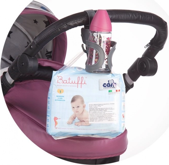 Enjoy comfortable walks with no compromises. The CHIPOLINO universal cup holder combines a 2-in-1 solution – a sturdy holder for a mug or bottle and a practical hook for hanging a bag or accessories. Thanks to its universal mount, you can easily attach it to most strollers, tricycles, and other baby gear.