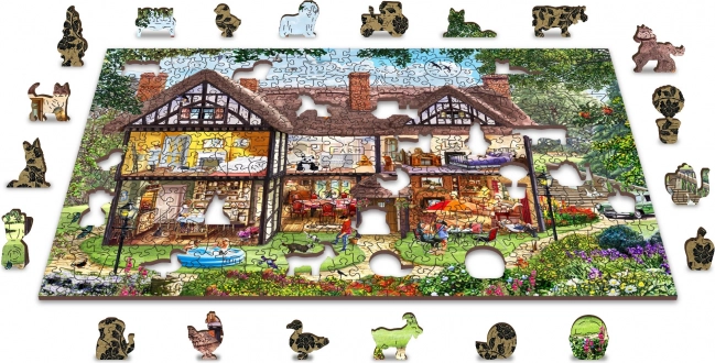 Discover both fun and challenge with the wooden double-sided 2-in-1 puzzle featuring a summer house motif. Precisely laser-cut pieces with special shapes of animals, objects, and buildings bring greater difficulty and a unique assembling experience. The puzzle is eco-friendly, without plastic packaging, and thanks to its smooth edges it fits perfectly in hand.