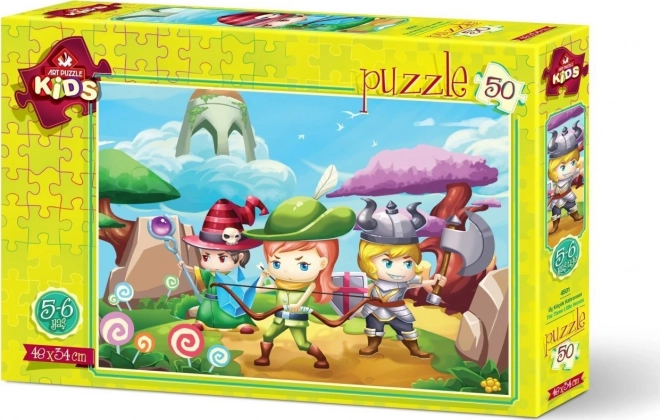 Discover fun for the little ones with a quality 50-piece puzzle that develops logical thinking, patience and fine motor skills. The “Three Little Heroes” picture will delight children and parents, and once assembled measures approximately 48 × 34 cm.