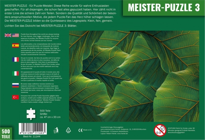 Meister-Puzzles are created for those who have "normal" puzzles long mastered. The Leaves motif works with subtle shades and repeating shapes, so every piece placement is about careful attention to detail and patience.